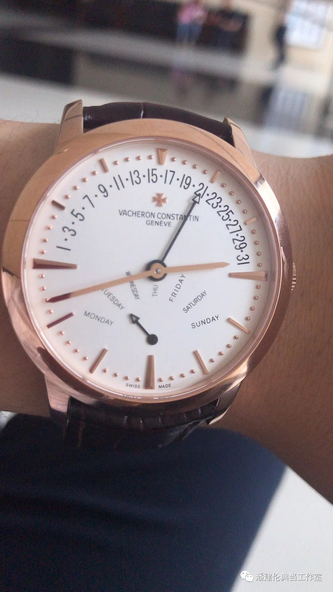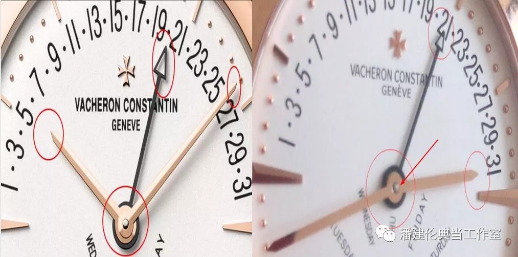 看完上面的这张图我是直接下了仿品的结论的,发图的同仁说这是一款高仿品,但我仍然认为这算不上高仿,毕竟能从外观上就能看出问题的手表那真的不能算作是高仿,您或许会说,如果有正品的图片比一下就更能说明问题,也好,老潘我就将江诗丹顿官网上该款表的几张正品图片放在这里比一下,再次提醒您注意那针轴针尖之间的区别。
