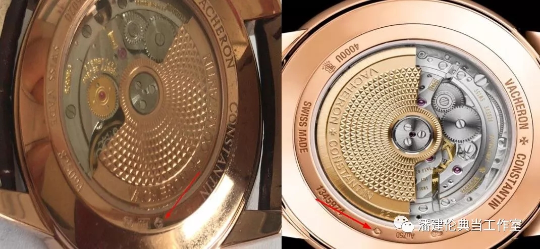 机芯就不说了,其字印、打磨、功能部件等比较起来差异明显,我想要说的是那材质印记,两个“狗头”比下来,是不是差异巨大,就算不对比,您拉大图片看看那个仿品的狗头印记,是不是就是一个简单的线条描绘出来的效果,完全没有所有正品狗头所应有的那种凸凹有致的立体感呢?