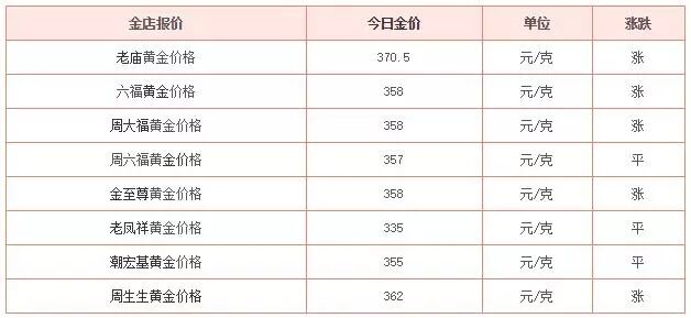 2014年5月14日国内部分珠宝品牌黄金首饰零售价格